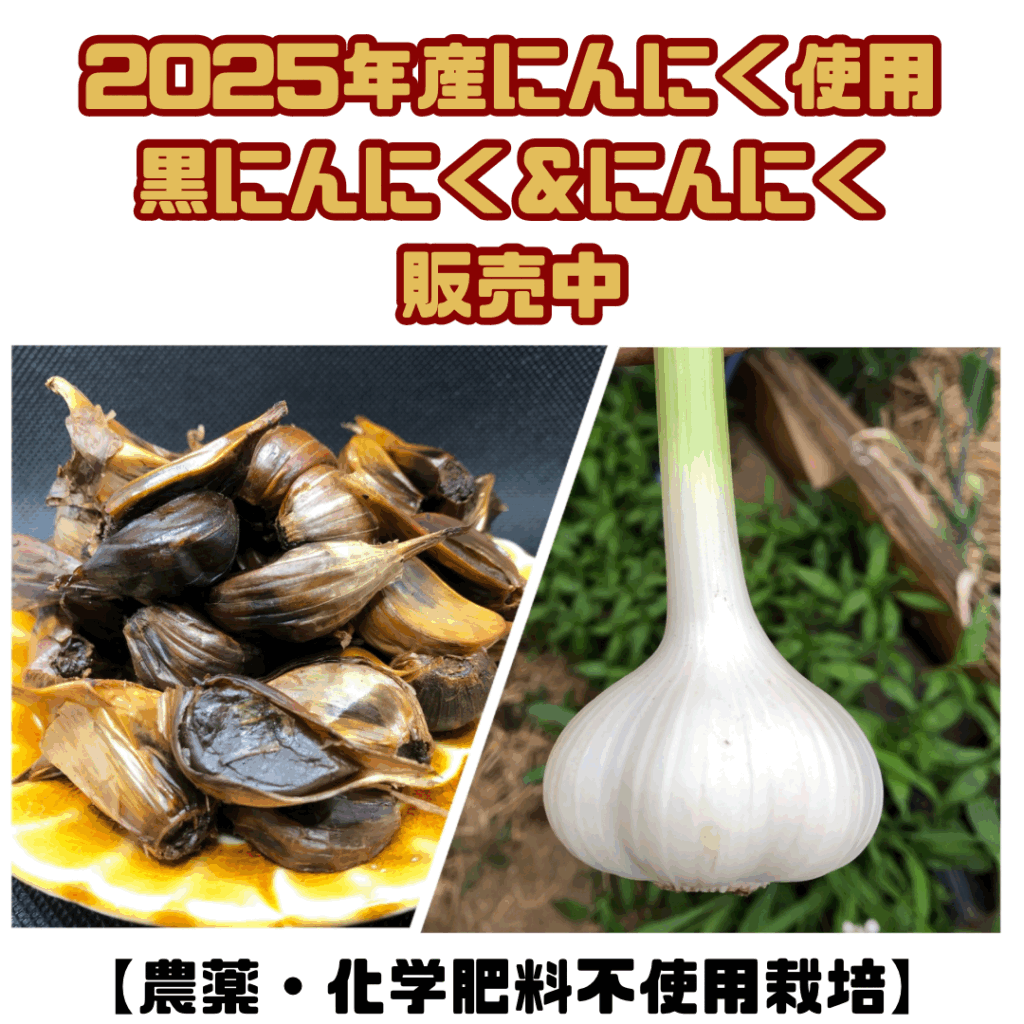 2025.09.05 NEWS 現在販売中商品ラインナップ 土づくりが上手くいき立派なネギができました♬ぜひお試しください! 黒にんにく生産・販売再開しました!夏バテ対策にどうぞ! 暑さで不作となり一時販売中止していたとうがらしも販売再開です!お買い逃しなく!